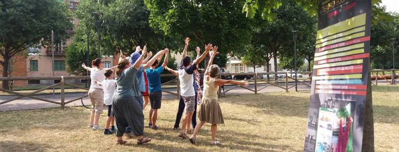 Mi è piaciuto perché diventa la cifra della possibilità dell’andare contro l’anonimato al quale tante volte ci assuefacciamo che è quello della fatica di abitare i luoghi in cui viviamo… io non sono di qua, ma in generale la città tante volte diventa tante volte il luogo dell’anonimato in cui si fatica ad avvicinare l’altro, anche solo a fare un saluto. Per me questa è stata l’esperienza della possibilità di comprendere quante risorse abbiamo per poter entrare in comunicazione con l’altro e quindi anche piccole esperienze che attingono a linguaggi diversi, al movimento, un’idea, un’azione ti mettono in comunicazione con persone che se magari avessi incontrato sull’autobus non avrei neanche salutato. Quindi secondo me esperienze di questo genere rendono più coscienti del potere comunicativo che abbiamo e che possiamo sfruttare per rendere meno anonimi i luoghi in cui siamo di passaggio o, ancor di più, che magari abitiamo. E poi, secondo me, vivere un parco in una sera qualunque a me restituisce l’idea del… io sono vissuta e cresciuta in paese e davanti a casa mia c’era un parco giochi e quello era il luogo dell’incontro in cui si è cresciuti e credo che abbiamo bisogno anche di questo: di stare fuori con persone che pian piano ci diventano amiche e ci fanno sentire a casa. Quindi è stata un’esperienza positiva. C’è sempre la sfida di aprirsi all’altro, ma credo sia anche la misura del comprendere la bellezza della vita: più ci apriamo più capiamo che la vita è bella soprattutto se vissuta con gli altri. -Rossella partecipante al laboratorio L’AZIONE POETICA di sabato 1 luglio 2017-