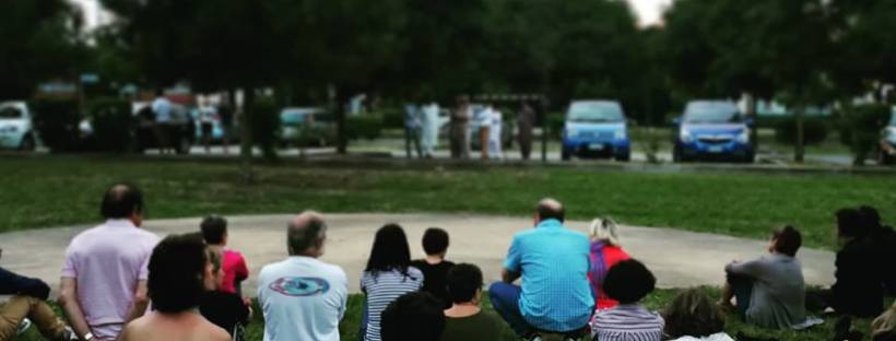 Mi è piaciuto molto il modo in cui si è tracciato il luogo, io abito a cento metri da qui e non ho mai pensato a questo spazio come uno spazio teatrale. Quindi si è trasformato per me questo spazio, ed è stato molto bello, è stato come scoprire questo parco in modo diverso.